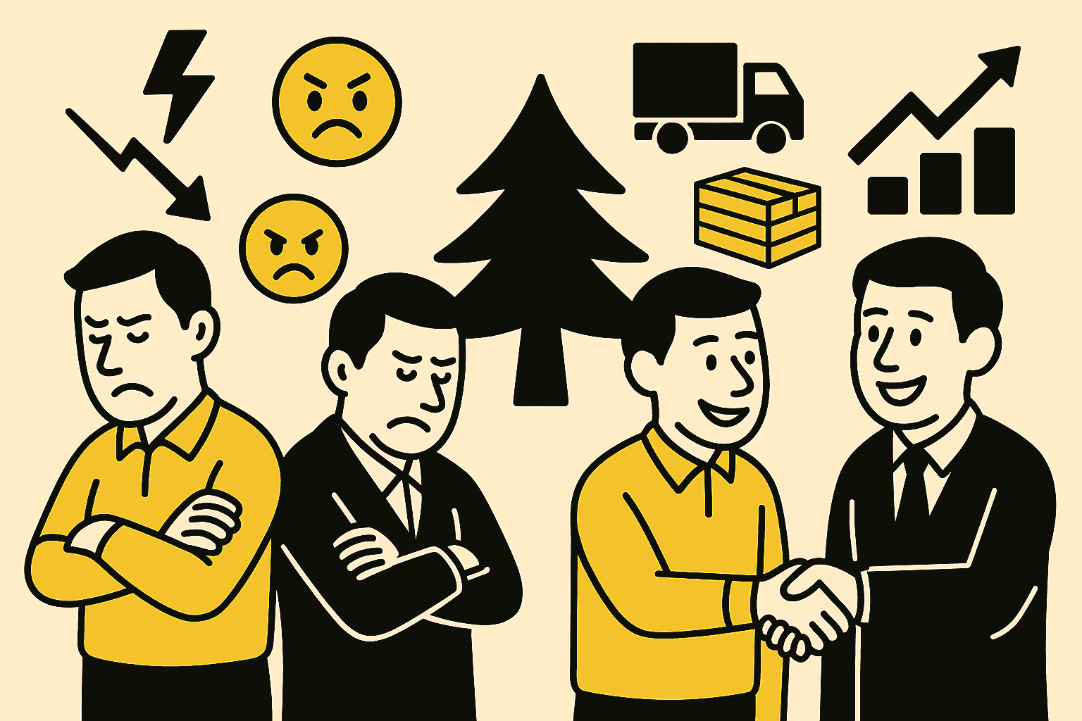 В лесной отрасли до сих пор сильна привычка воспринимать соседнюю пилораму или склад как врага. «Он рядом пилит — значит, хочет выдавить меня с рынка». «Снизил цену — подставил всех». «Работает с теми же клиентами — значит, намерен отнять мой хлеб».