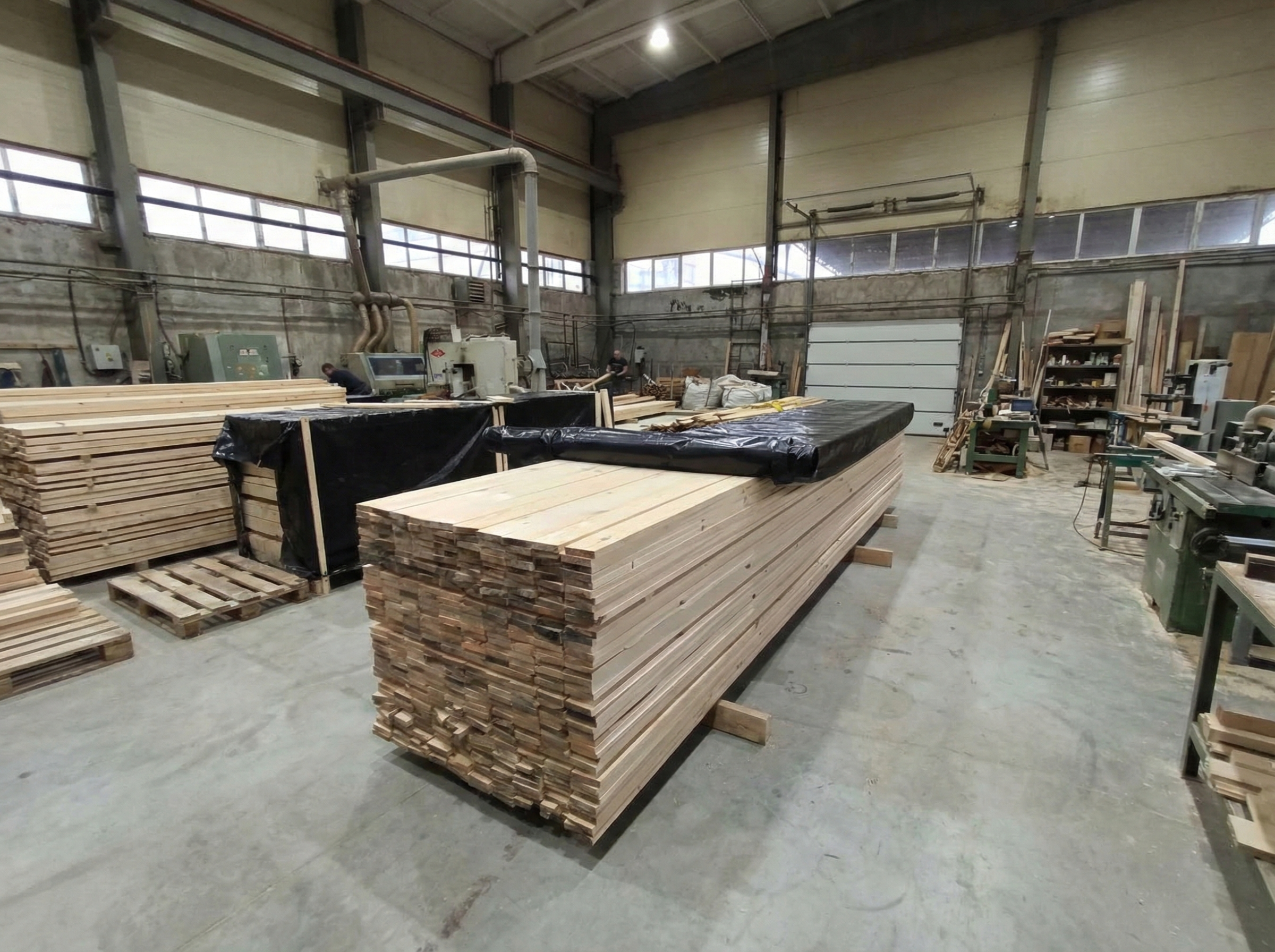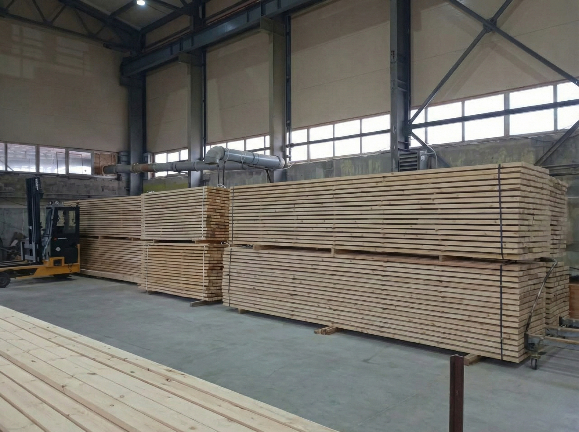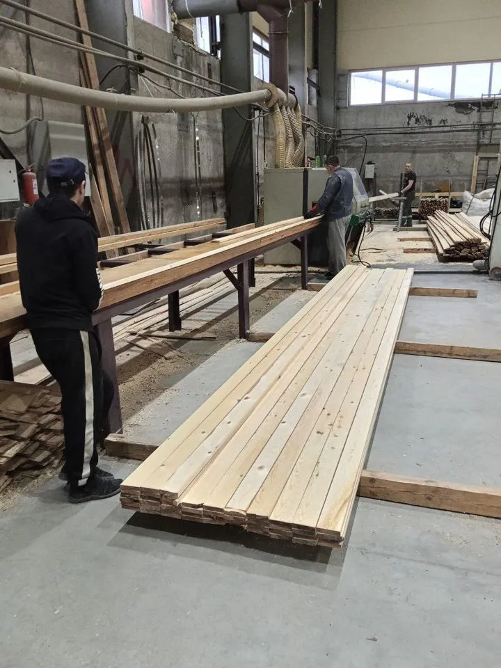 - Собственное производство и сырье — пилорама находится в г. Арамиль, лес везем со своих делянок. Полный контроль качества по ГОСТ-ам от бревна до доски.