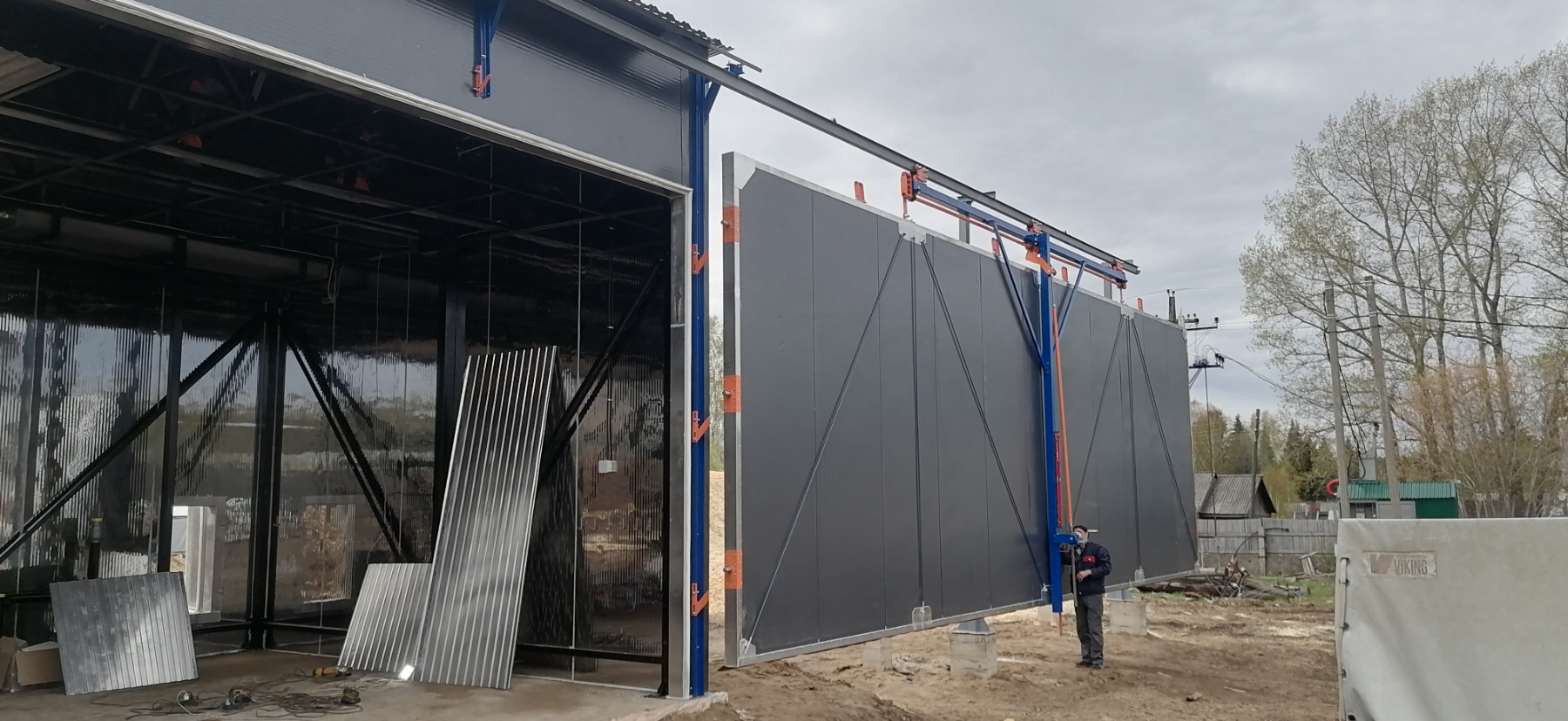 - Откатные ворота с подъёмным механизмом.
